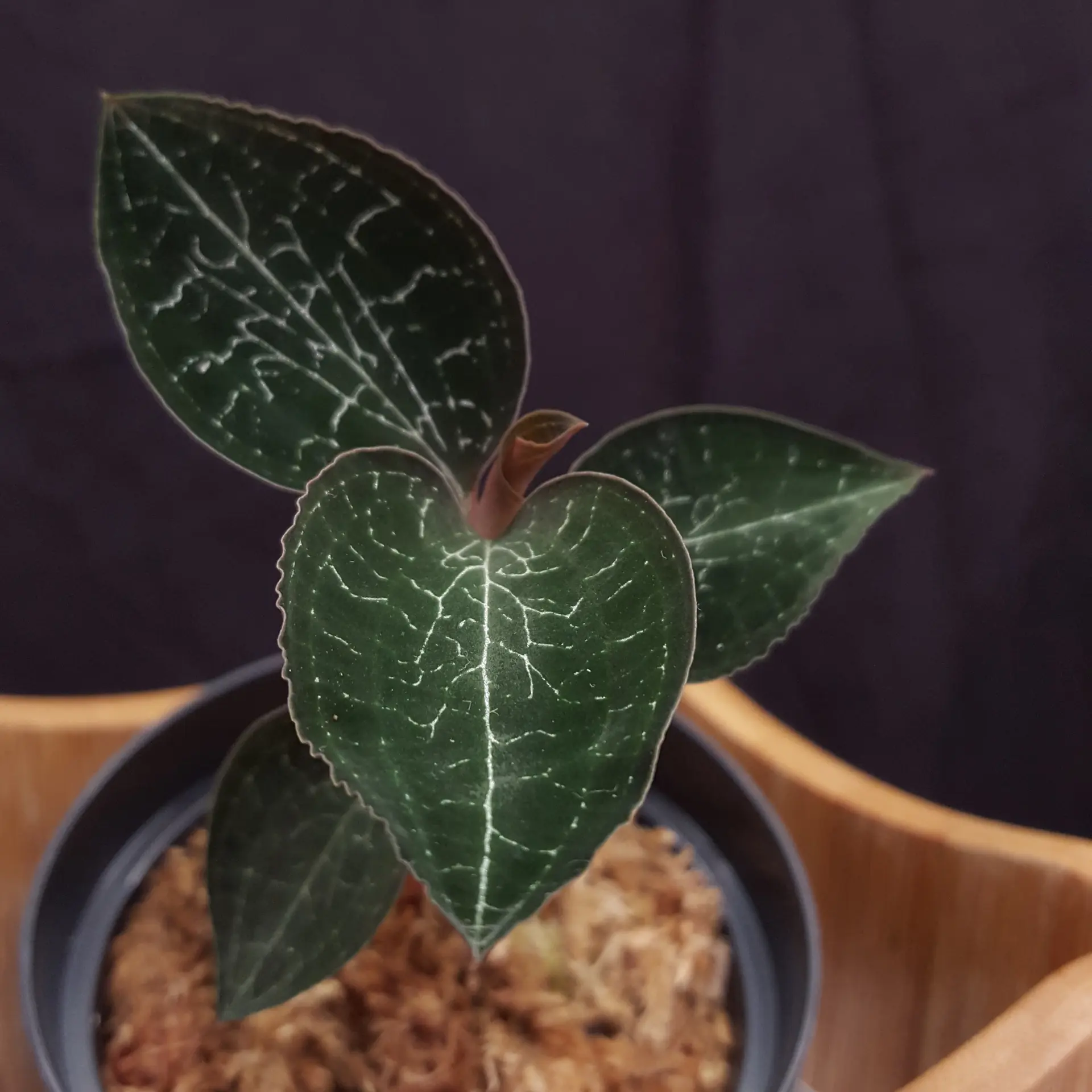reddish colour on the underside - this is Anoectochilus formosanus 'Milky Way'