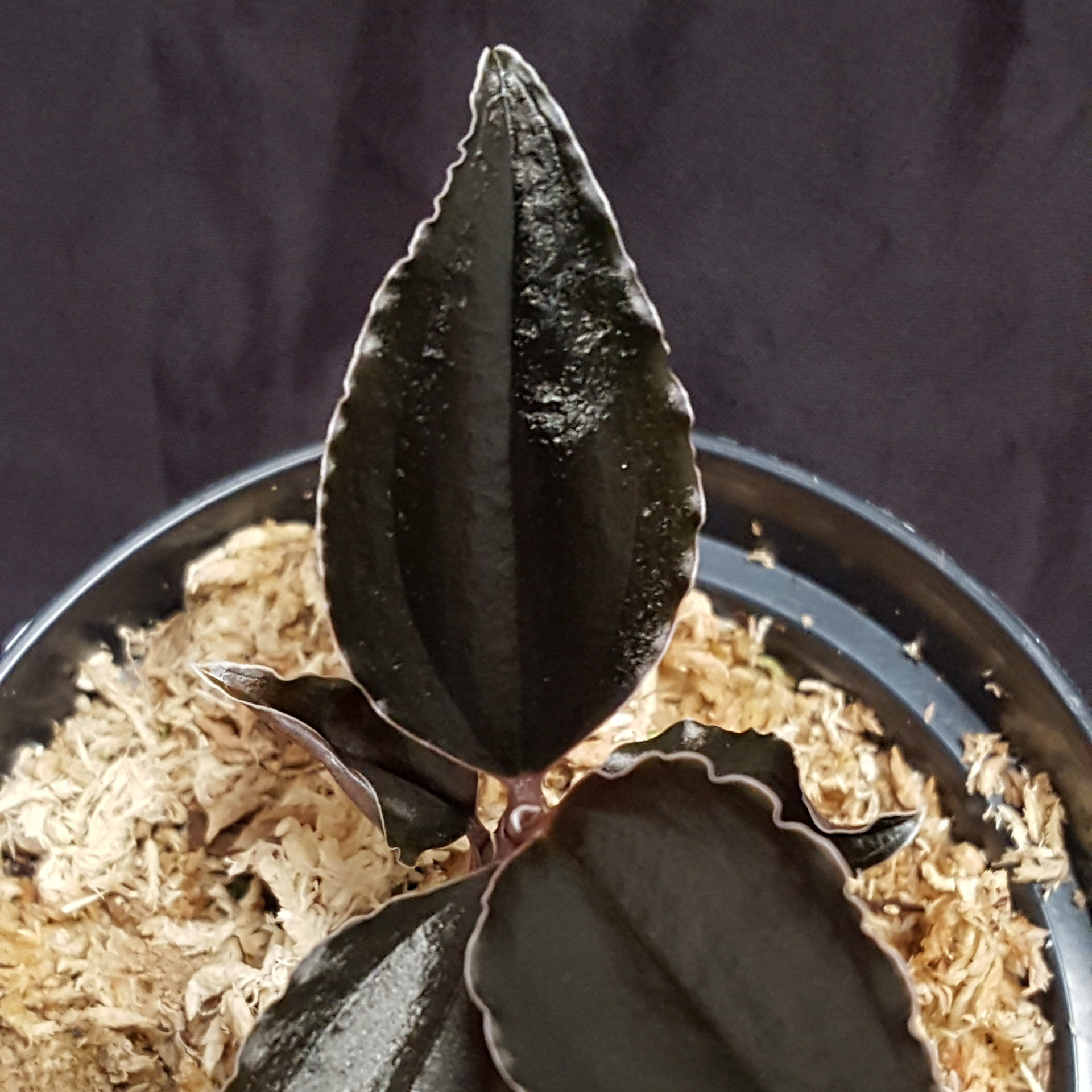 Odontochilus is a genus of jewel orchids that is very rarely offered. In the wild, they thrive in the undergrowth of moist forests. The special feature of Odontochilus elwesii ‘ New Moon’ C.B.Clarke ex Hook.f. 1890 are the deep red, almost black coloured leaves, which are difficult to photograph due to their shiny surface. This small jewel orchid is found in Vietnam, Thailand, China and Myanmar and is certainly unique due to its appearance. The dark leaves are framed with a fine white line. It thrives in high relative humidity at room temperature, but should not be exposed to direct sunlight. Please keep the Sphagnum substrate moist at all times, but ensure that it is not dripping wet.The photos are exemplary, you are purchasing a similar plant.